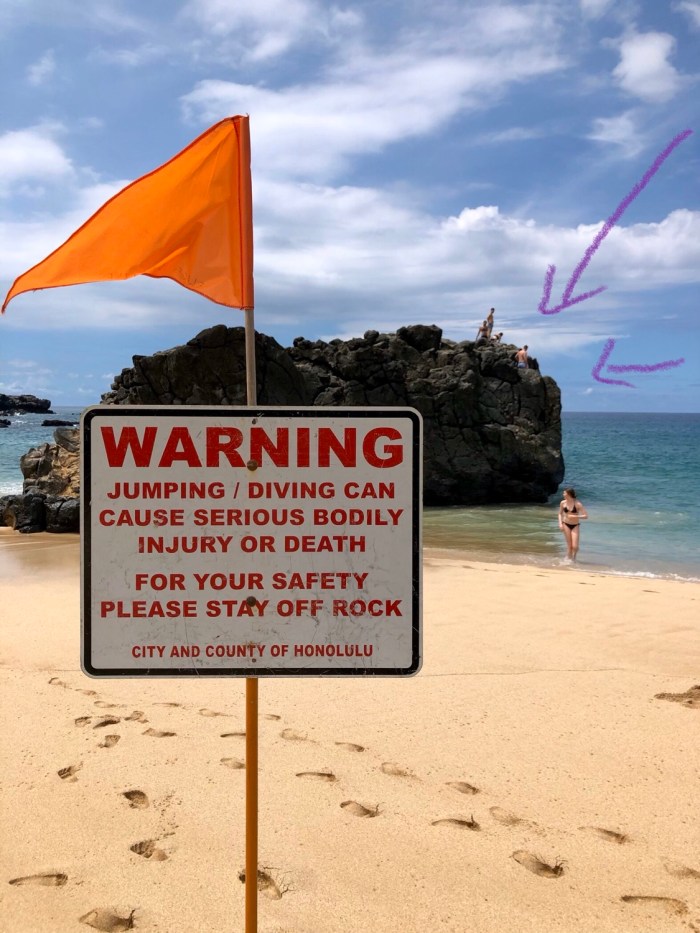 It’s not raining so we decided to go back to the North Shore and jump off a big rock.