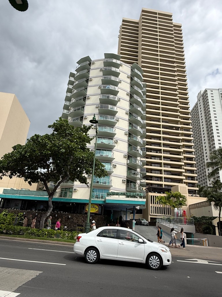For the first three nights I’m staying at the Circle Hotel on Waikiki Beach.  It looks really cool.  It’s a circular building in the shape of a Chinese lantern.  It has thirteen floors and the rooms are shaped like pie wedges. It’s right across from the beach and within walking distance of everything.  Hmm, I wonder if they have an elevator πŸ˜‚. Oh well, I can just let my suitcase slide down the stairs. Right Krystal? πŸ˜‚ oh wait. I might need it to be functional for the rest of the trip hahaha.