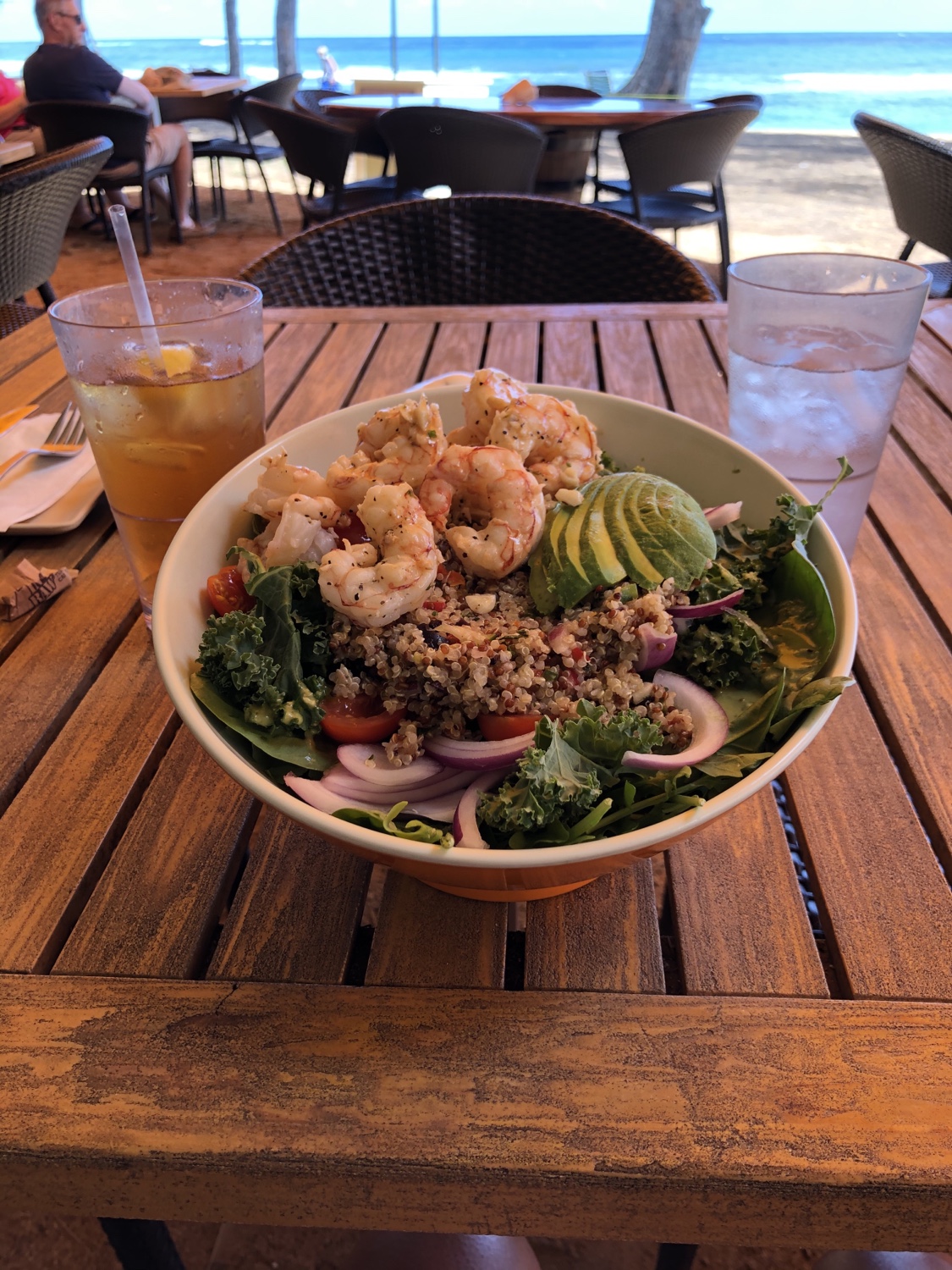 Lunch at the Lava Lava Beach Club. This time I get a big table. Lol. The waitress was trying to make small talk. Her: Are you here on business? Me: No. I’m here for fun. Her: By yourself? Me: Yes. I went surfing this morning. She ran out of questions π