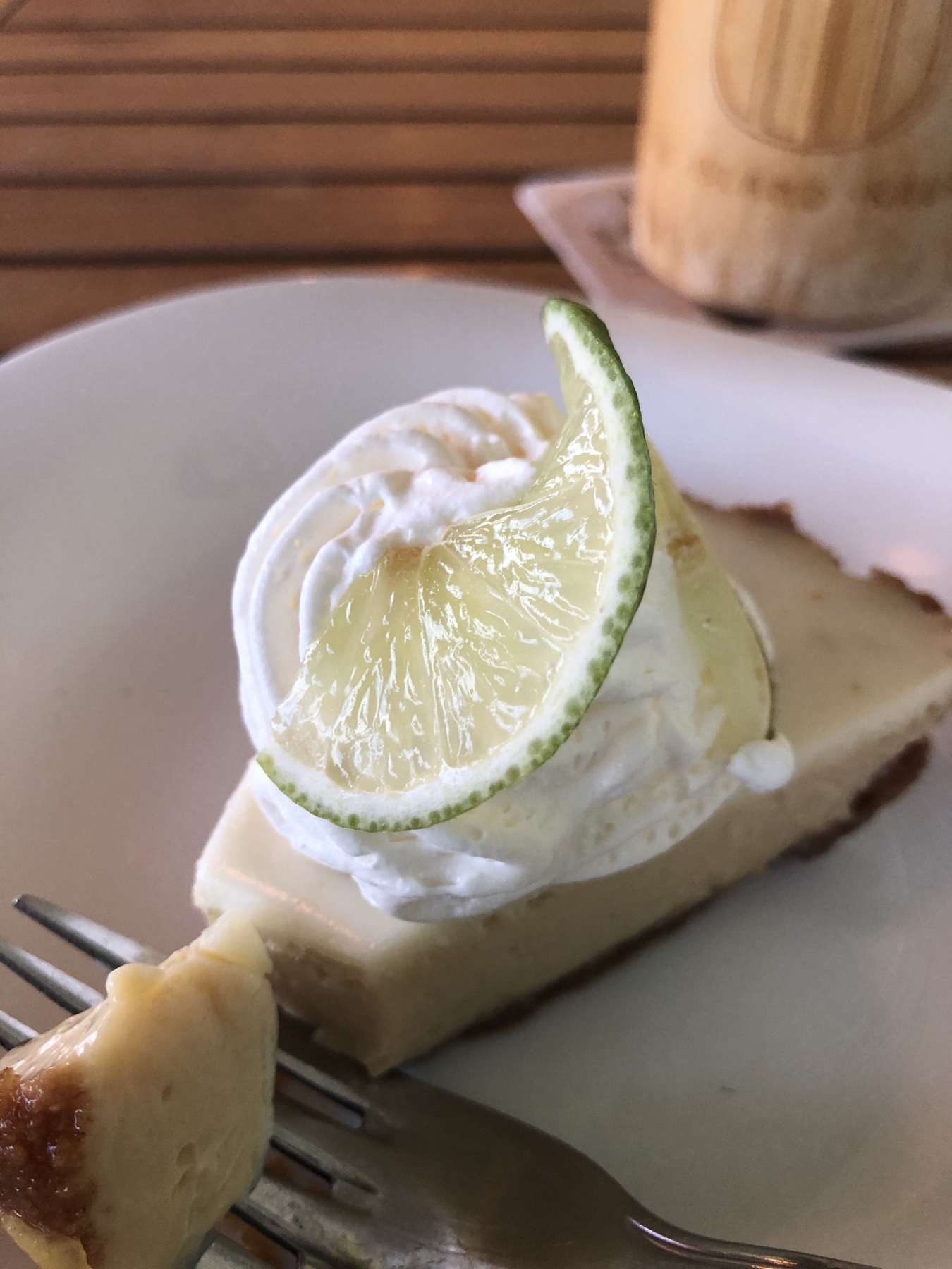 Back to the hotel for dinner. Seated at the same table. As we were walking to my table the hostess said she admired me for eating alone. I told her it was either that or starve…π the look on her face was priceless. I know. I’m terrible π I ordered a Lava Lava Mai Tai that comes in a giant bamboo glass. Probably nine inches tall. You get to keep the glass. So I will take one for the team. Team foxpartyofone lol. I ordered the Mahi chowder with a side of rice. Still hungry so I ordered the key lime pie.