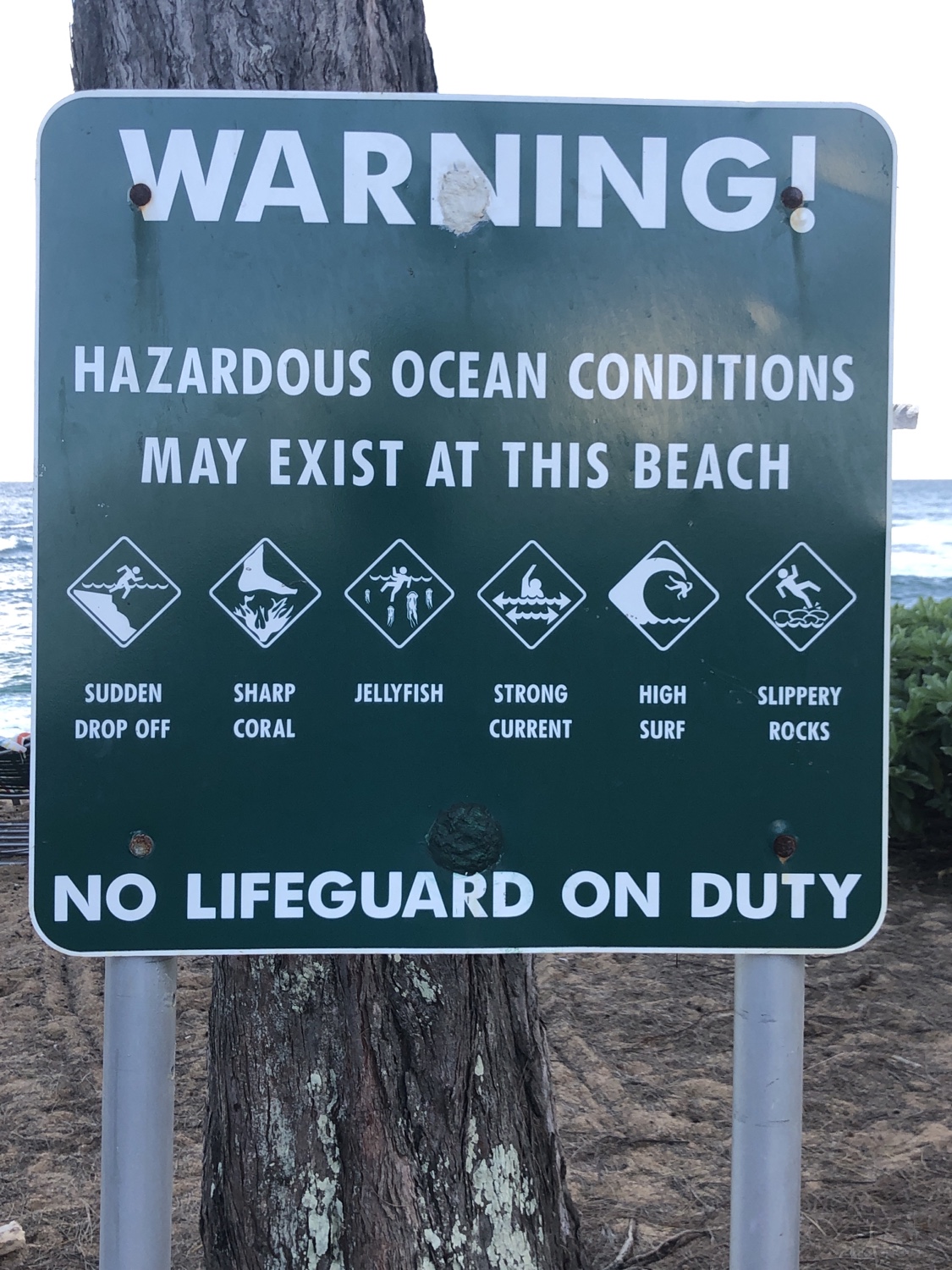 So I’ve been down to the beach in front of the hotel a bunch of times and there is never anyone swimming. I found this sign today π³ I guess a 25 minute drive to Poipu Beach really isn’t that bad lol.