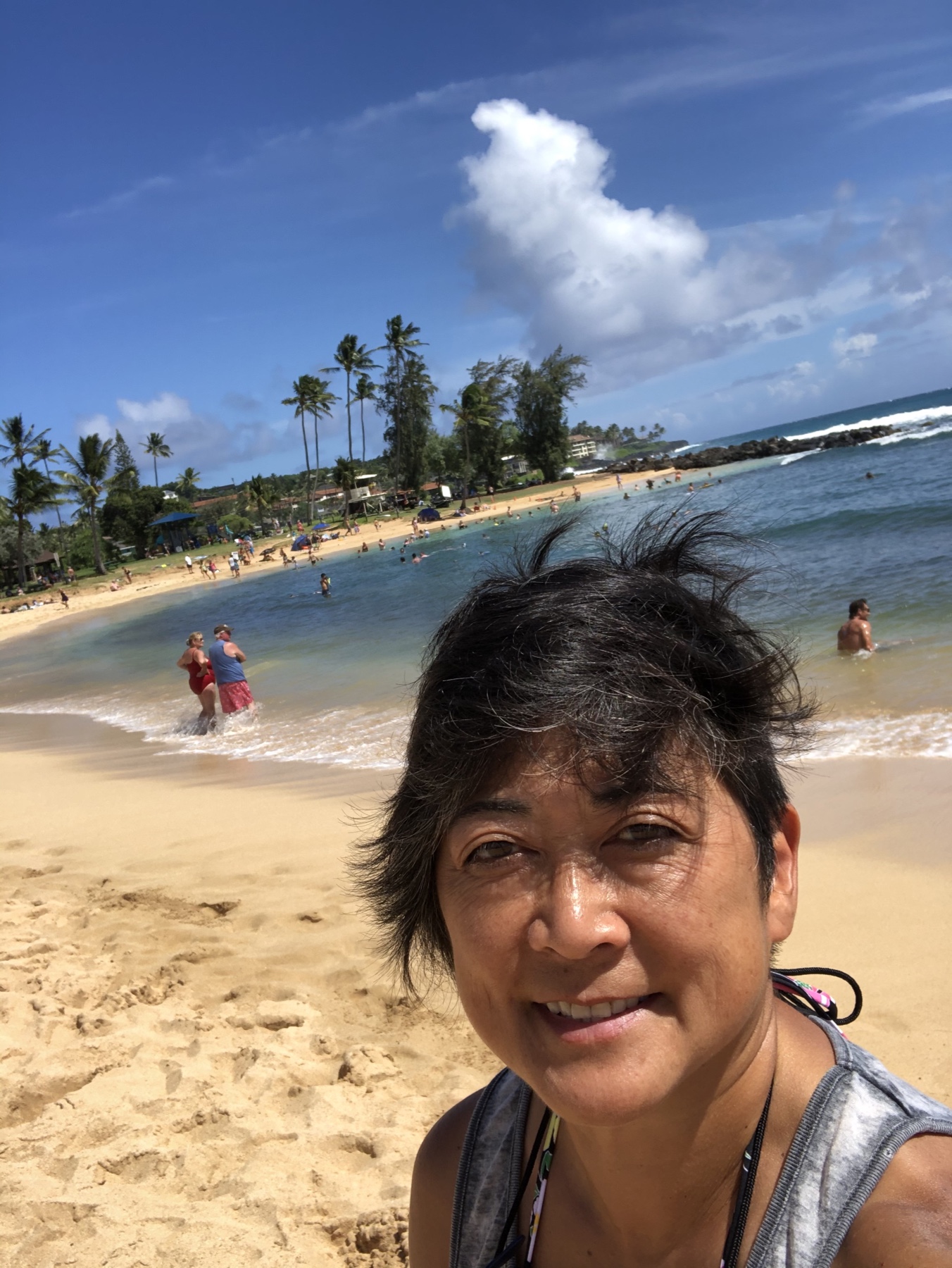 Traveled down to Poipu Beach. No waves there either. Floated around. Got a little burned even though I put sunscreen on.