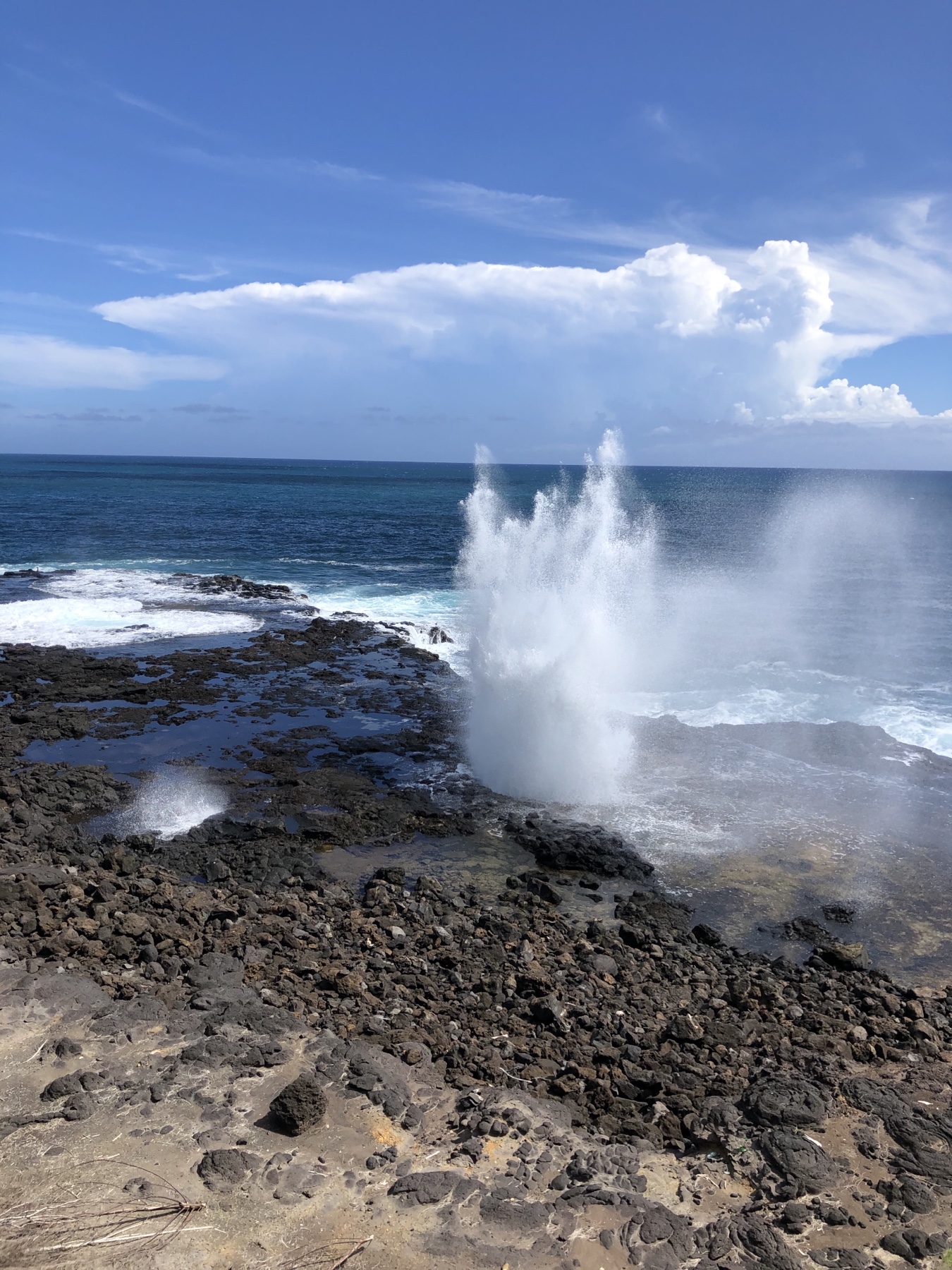 I didn’t see any cats but I did see a bunch of chickens. The Spouting Horn reminded me of the blow hole at Depoe Bay.