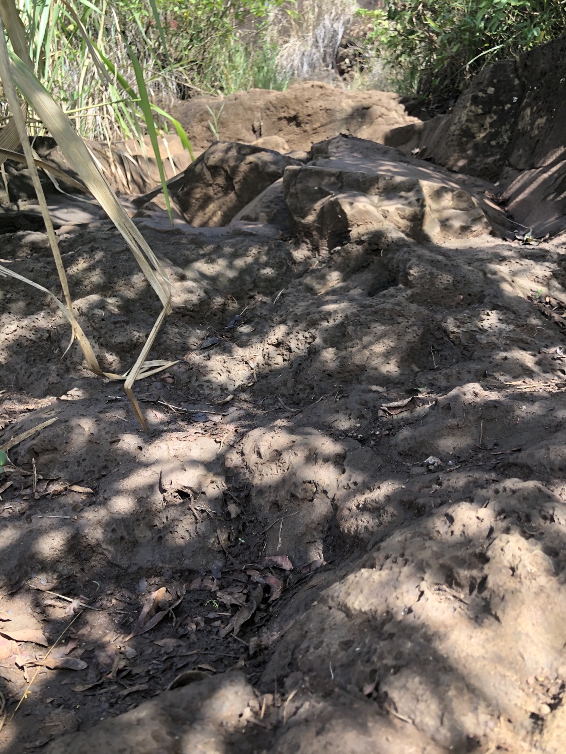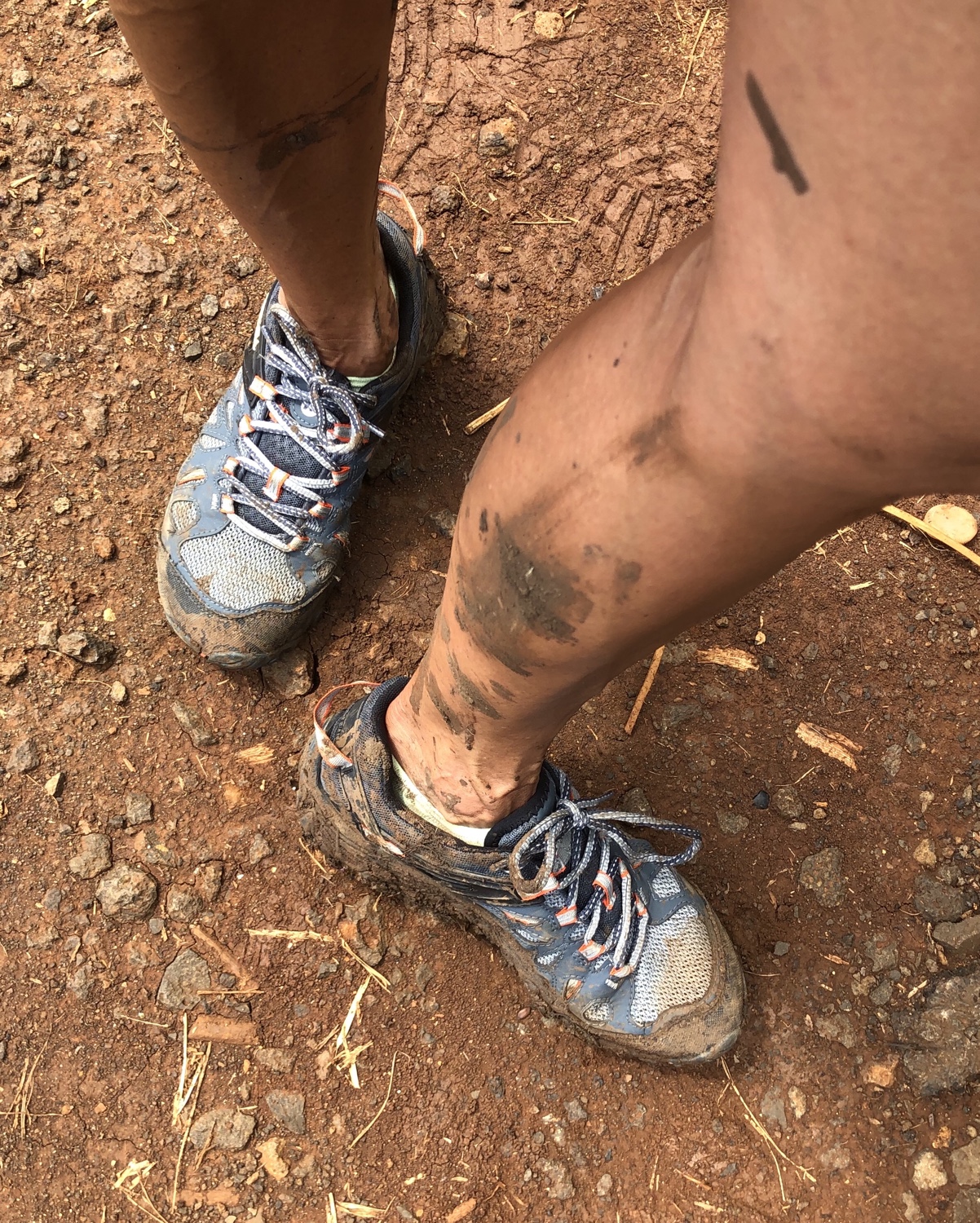 After a muddy hike, take your shoes down to the beach. Rinse them off in the ocean and scrub them with sand. The sand helps clean off the mud and salt water and gets rid of stains. I did this after the Pu’u Pia Trail hike, sticky brown mud, and the Sleeping Giant, red dirt mud. Both times my shoes came clean.