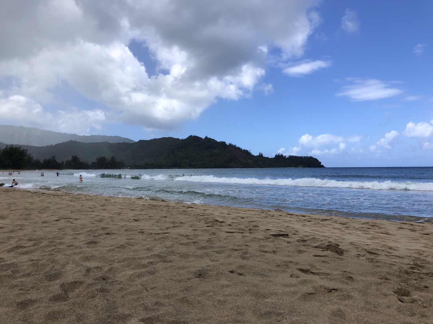 Hanalei Beach was beautiful. It was huge. I spent three hours in the water body boarding. I caught a few good waves. It rained off and on but it was 85 degrees lol.